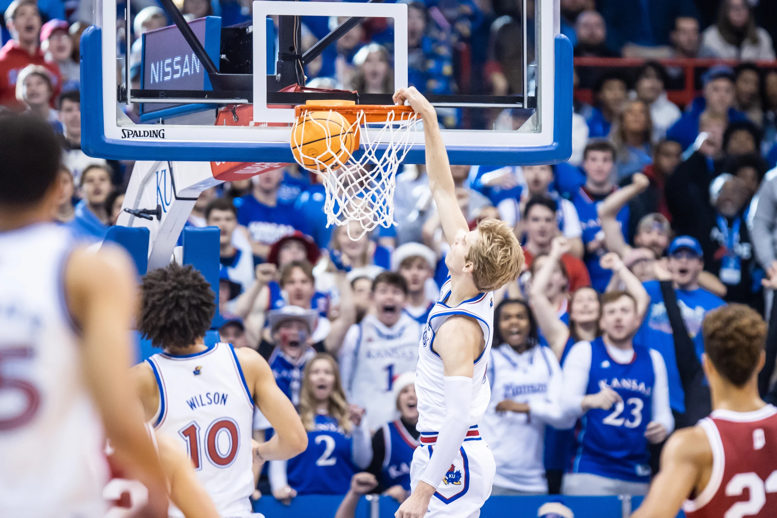 The sold-out crowd in Lawrence, which had a fair share of Hoosiers fans, erupted in favor of their home team during the early explosion.