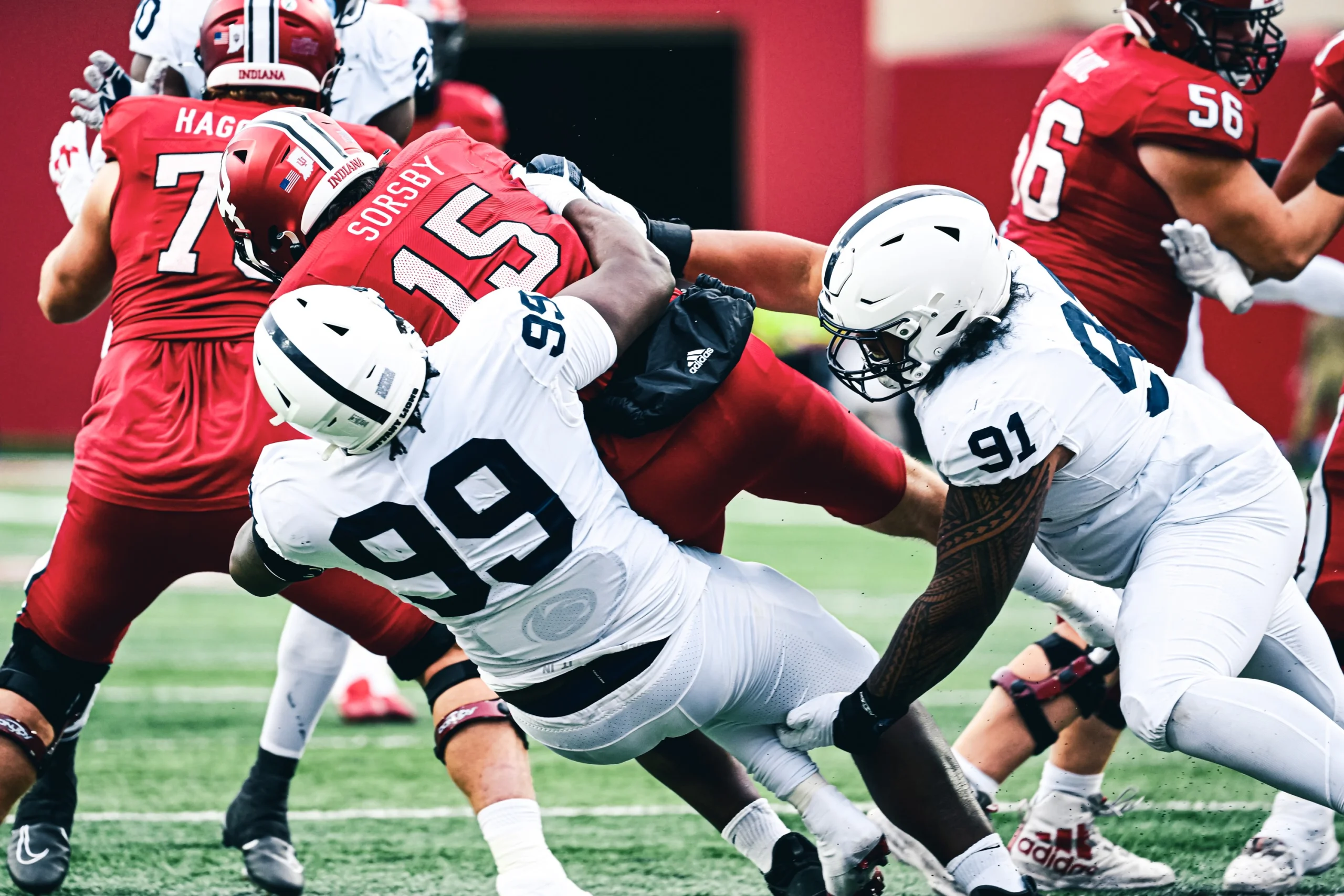 Tuttle showed IU what it has been missing on offense: an efficient quarterback. He started 6/6 and used his legs to keep the PSU defense off-balance. Then, a big hit from Dvon Ellies resulted in an injury to Tuttle’s shoulder area. True freshman Brendan Sorsby took over for the Hoosiers.